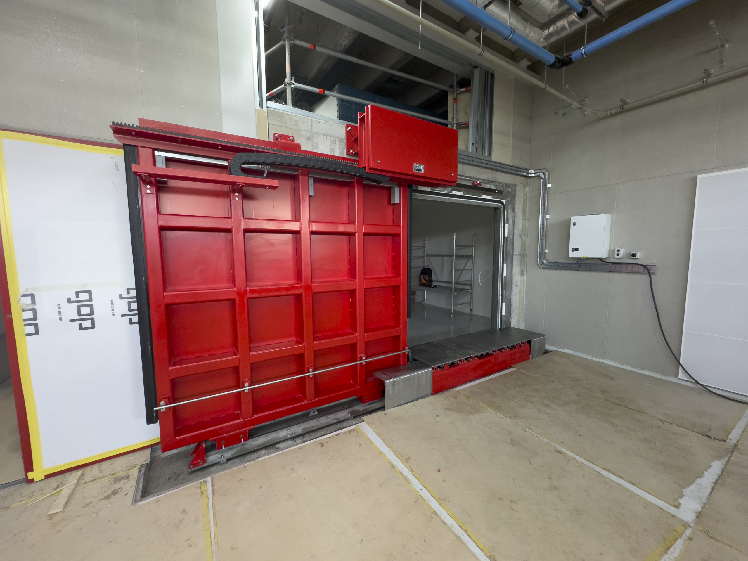 A key aspect of the installation involved planning for future site developments. The current configuration will see other contractors increase the final floor level, ensuring that the floor plates in front of the closed door will be flush with the surrounding floor. This design element will facilitate seamless vehicle movement into and out of the test chamber, enhancing operational efficiency.